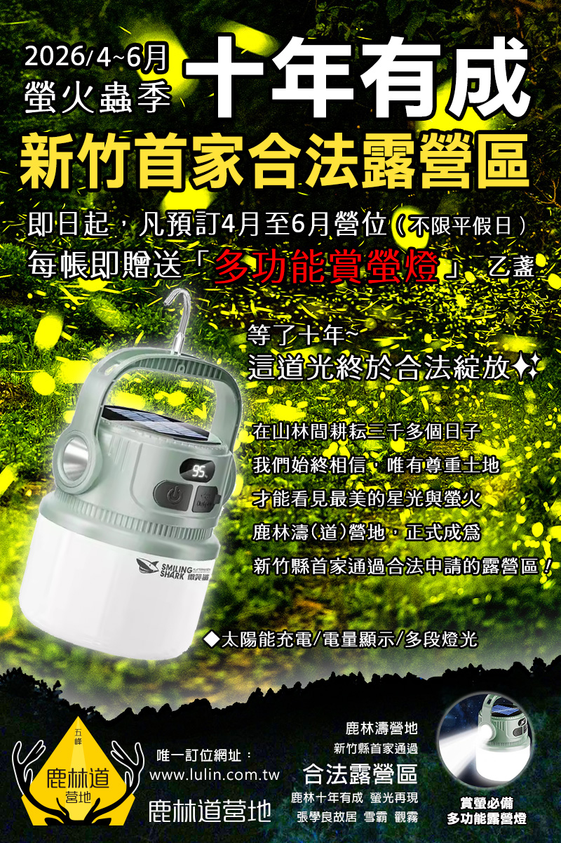 每帳即贈送「多功能賞螢燈」乙盞!
